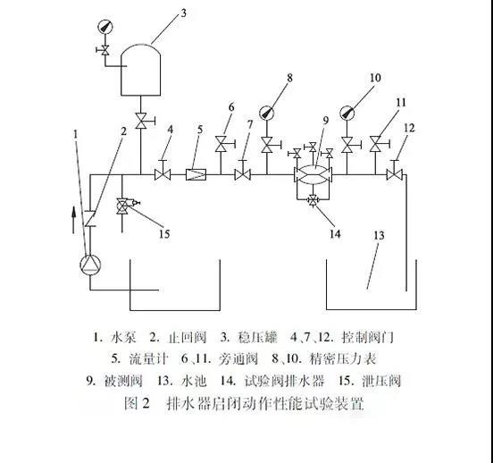 在文獻[1]~[5]中,對倒流防止器的使用性能、制造安裝和試驗檢測給出了明確的規定和要求,其中對于倒流防止器的設置要求和阻力性能試驗及性能指標有所差異。倒流防止器的使用和性能試驗項目及方法主要包括排水器啟閉動(dòng)作性能試驗,排水器密封性能試驗,回流污染功能試驗,耐久性能試驗,壓力損失試驗,殼體強度試驗和閥瓣的強度試驗。3.1 排水器啟閉動(dòng)作性能試驗排水器啟閉動(dòng)作性能試驗裝置(圖2)壓力小于0 3 MPa。被測閥的進(jìn)口壓力降低,在不大于出口壓力時(shí),排水器應開(kāi)啟排水,但不持續排水。在被測閥通水時(shí),排水器應迅速關(guān)閉,不漏水。連續重復上述步驟3次以上,排水器啟閉動(dòng)作應靈敏可靠。